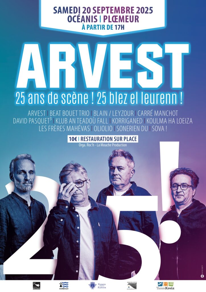 ARVEST fête ses 25 ans – Salle Océanis – 56270 Ploemeur – Tarif 10 € à partir de 17h00 !